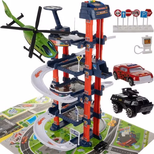 Ett stort och interaktivt parkeringsgarage i 4 nivåer som ger barn timmar av kreativ och rolig lek! Med hiss, ljudeffekter, ljus och flera tillbehör kan barnet skapa sin egen stad och spännande biläventyr.