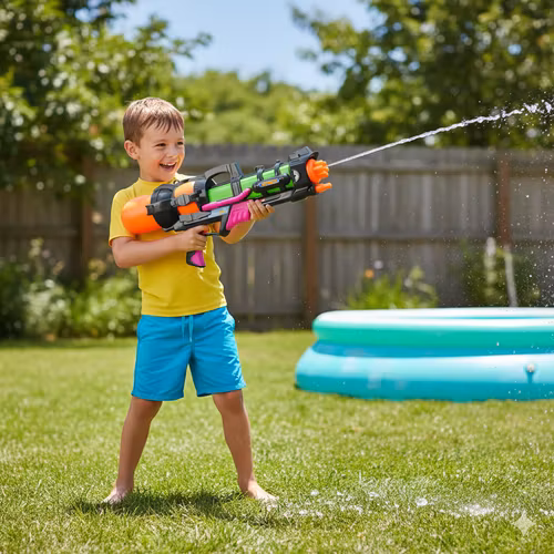 Gör sommarens vattenkrig ännu roligare med detta kraftfulla vattengevär på hela 60 cm! Med en stor tank på 1,25 liter och lång räckvidd kan du leka längre utan avbrott och träffa mål på upp till 6 meters avstånd.