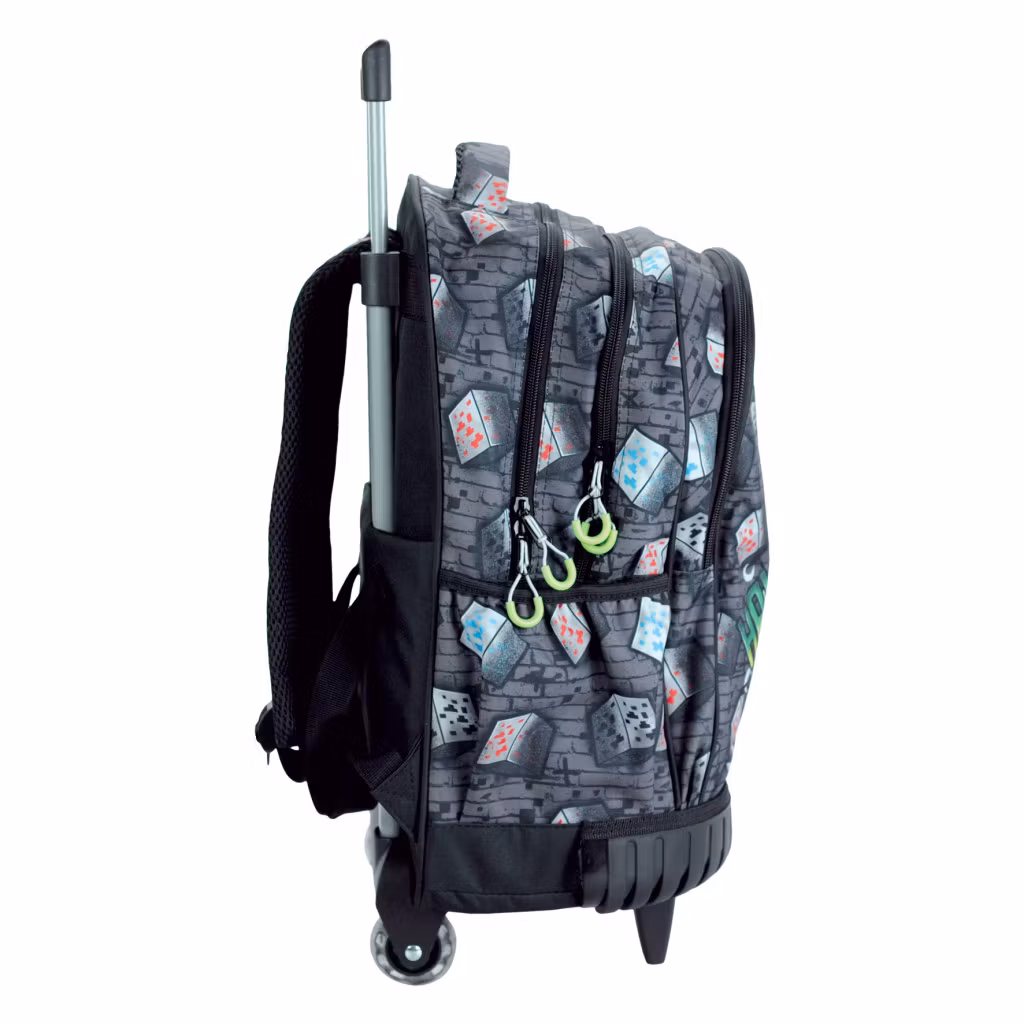 Gör skoldagen både enklare och roligare med denna stilrena Minecraft rullande skolväska i grå design. Perfekt för barn som vill kombinera funktion, komfort och favoritspel i ett!