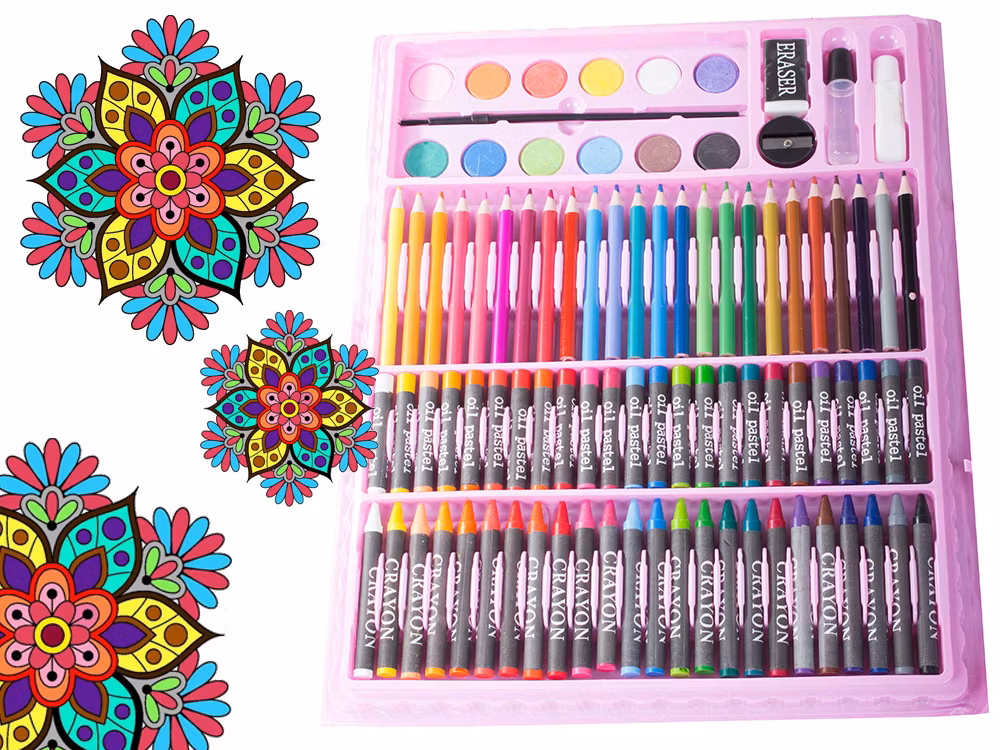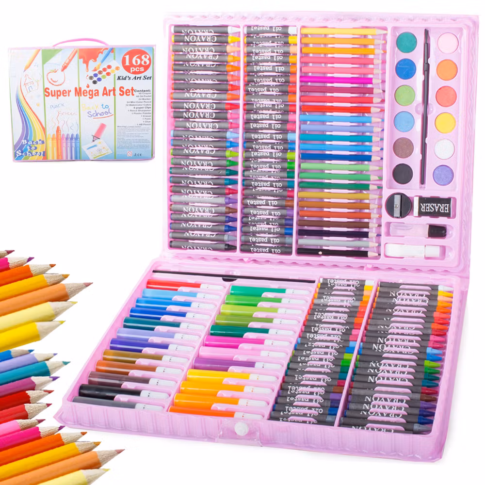 Utforska din kreativitet med vårt fantastiska konstnärliga set! Denna smidiga resväska är perfekt för både barn och vuxna som älskar att måla och skapa. Med hela **168 element** ger detta set dig alla verktyg du behöver för att uttrycka dina idéer och fantasier.
