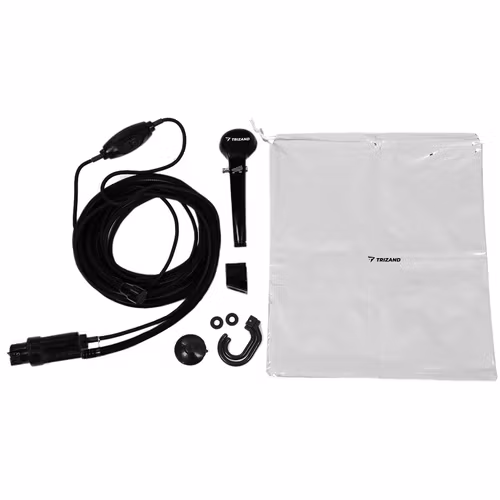 camping shower, portable shower 12V, TRIZAND shower, travel shower, shower car outlet, outdoor shower, camping accessories, shower pump