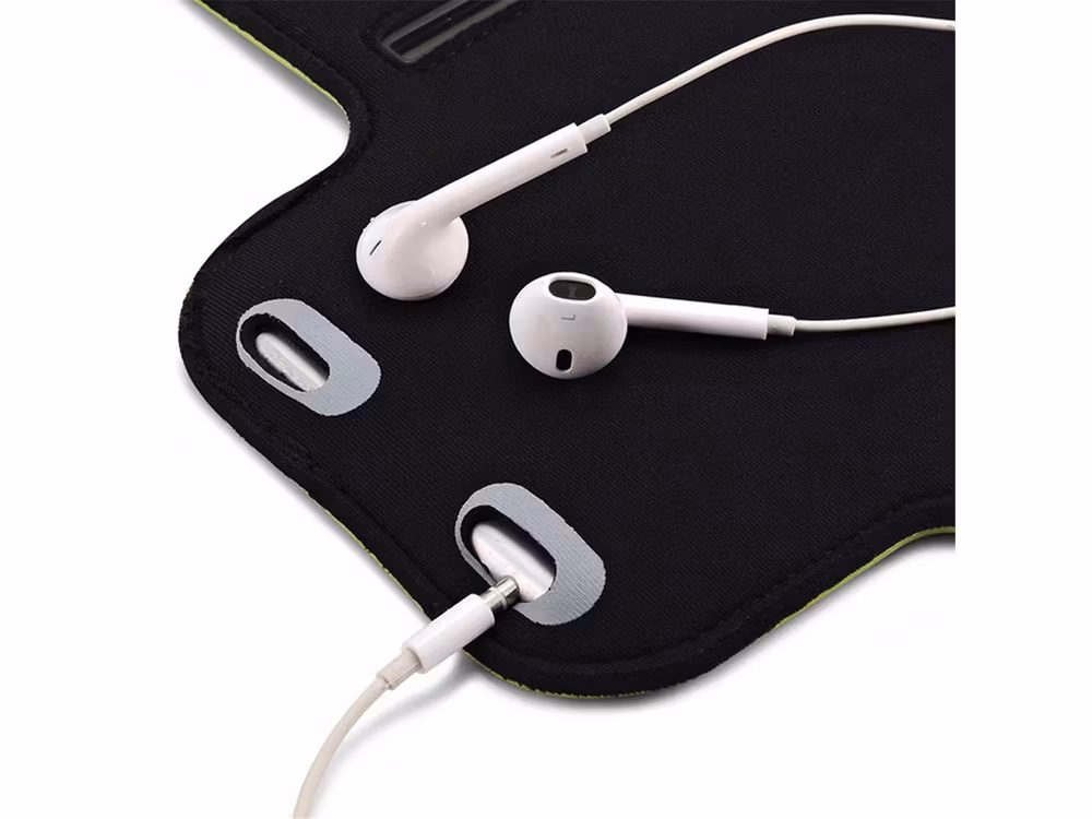 Fodralet har en justerbarkardborreförslutning för enperfekt passform på armen Den inre delen är gjord avneoprenskum. Dessutom har fodralethål för hörlurar, så du kommer att ha ständig åtkomst till din musik medan du springer eller tränar på gymmet.