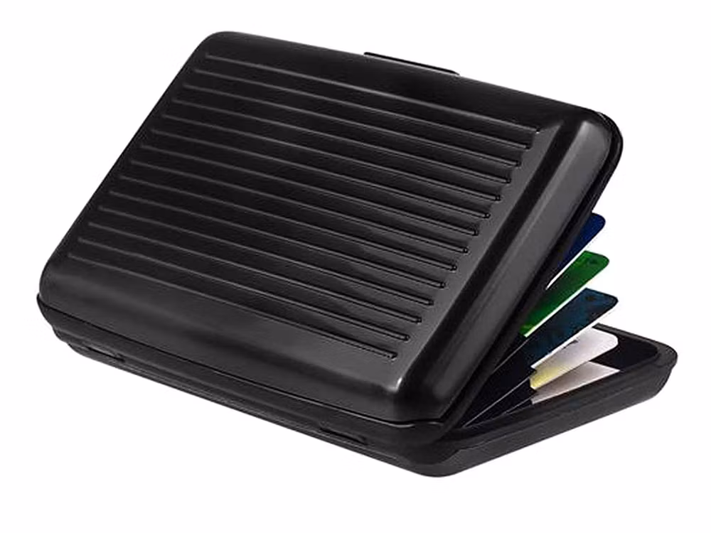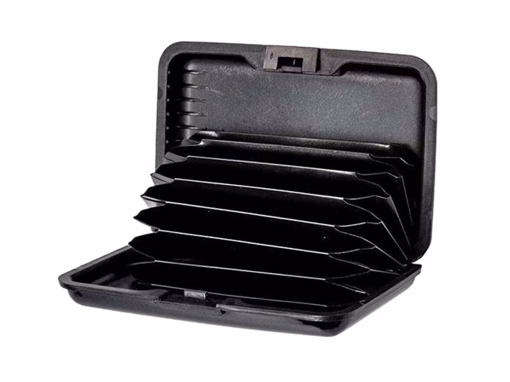 Dokumentfodral i aluminium, plånbok i aluminium, färg svart.