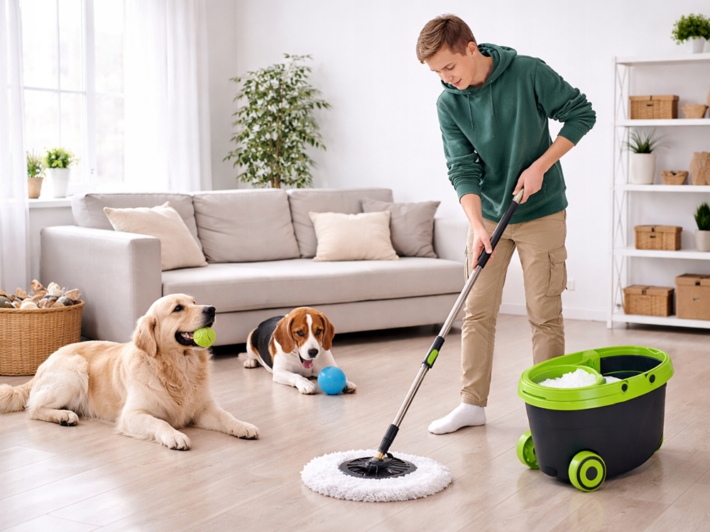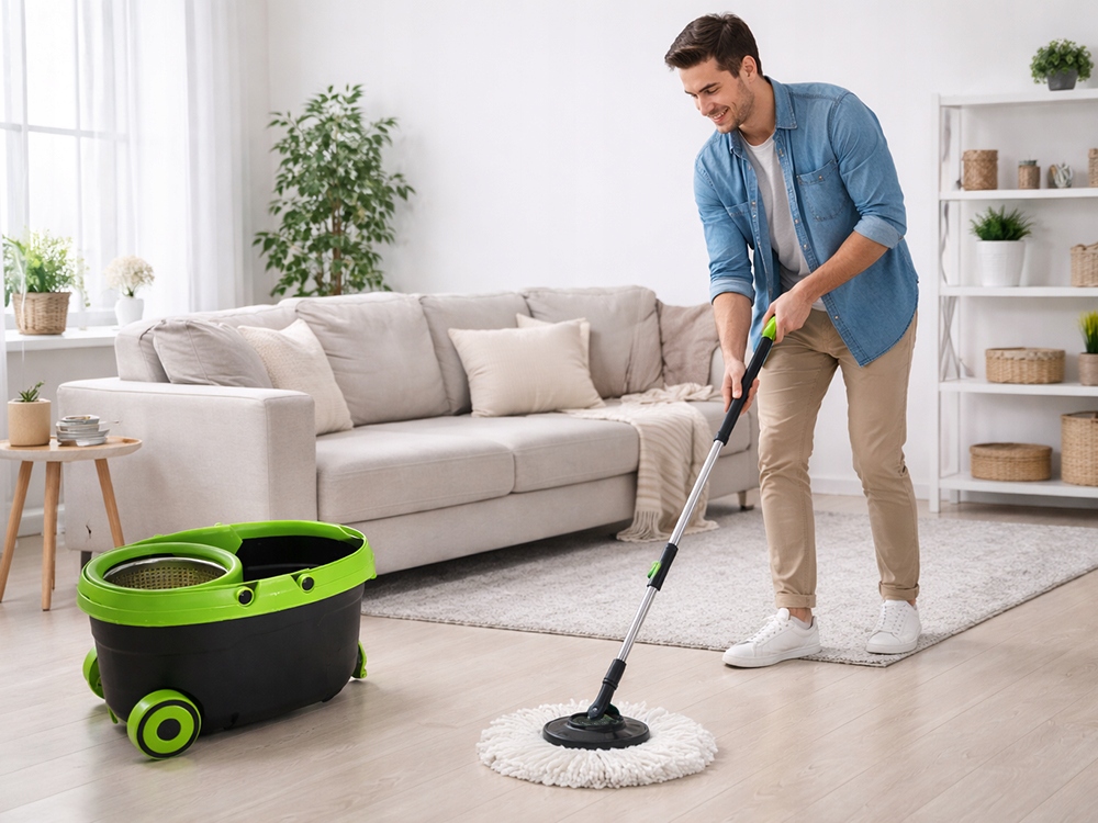 ✨ Den roterande moppen är ett fantastiskt verktyg för både torr- och våtrengöring. Den är praktisk och bekväm att använda. Den är idealisk för rengöring av alla typer av golv och ytor. De större hjulen gör det lättare att förflytta sig över ojämna ytor och underlättar bekväm transport av hinken från en plats till en annan.