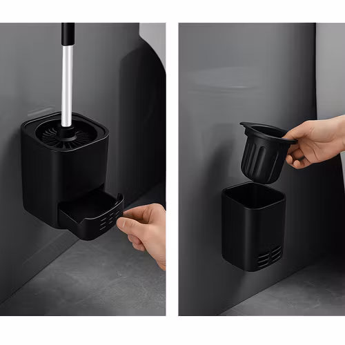 Borsten absorberar inte vatten, vilket minskar stänk vid användning och förvaring. Håller området runt toaletten rent och hygieniskt.