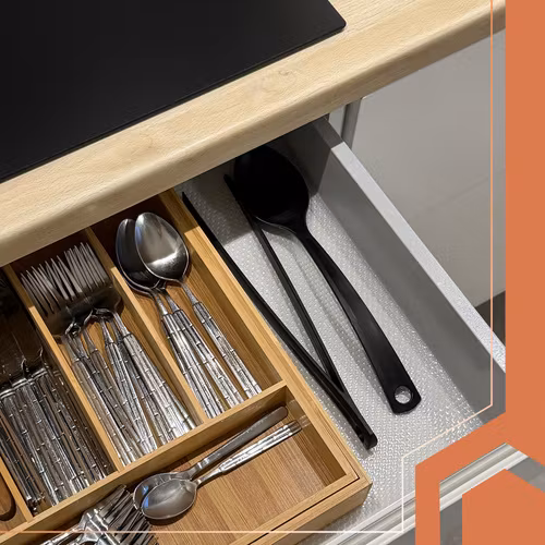 Förhindrar att föremål glider runt i lådor och skåp – minskar även oljud.