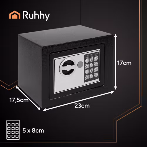 Skydda dina värdesaker med RUHHY’s elektroniska säkerhetsskåp. Kompakt, robust och säker – perfekt för hemmet, kontoret eller hotell.