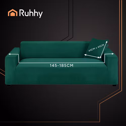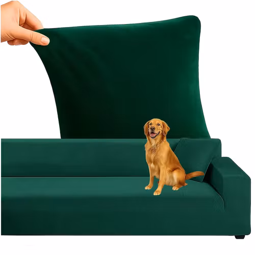 Elastiskt sofföverdrag i mörkgrön sammet för hörnsoffa 145–185 cm. Perfekt passform, slitstarkt material och maskintvättbart. Skydda och förnya din soffa med RU