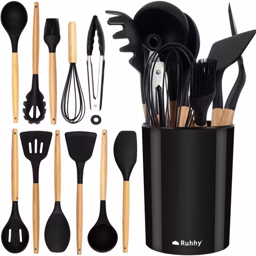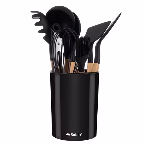 Köksredskap i silikon – 11 delar med hållare (12 delar totalt)