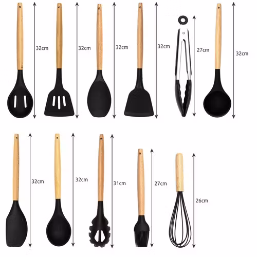 Gör matlagningen enklare och mer stilren med detta kompletta set av köksredskap i silikon. Perfekt för både vardagskockar och matentusiaster som vill ha funktionella och hållbara verktyg i köket.