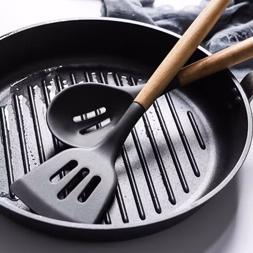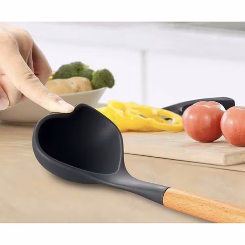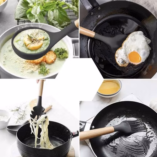 Den mjuka och flexibla silikonen gör att redskapen inte repar eller skadar non-stick-beläggningar, vilket förlänger livslängden på dina kastruller och stekpannor.