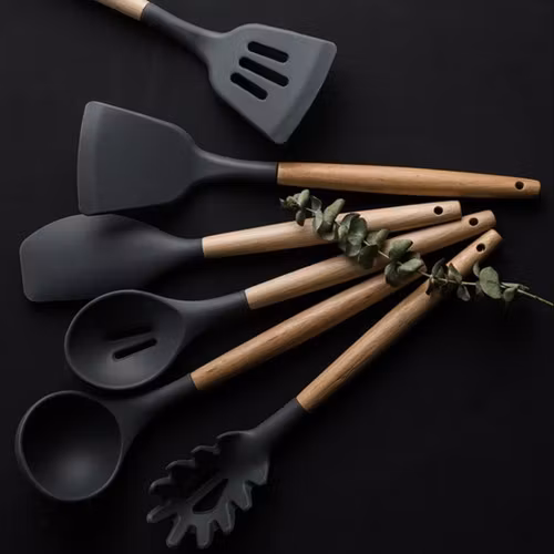 Köksredskap i silikon – 11 delar med hållare