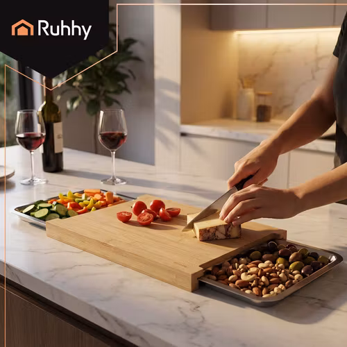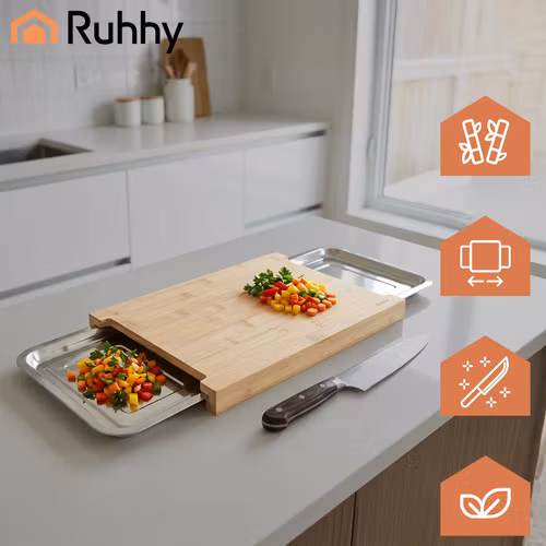 🔪 Skärbräda i bambu med utdragbara behållare – Ruhhy