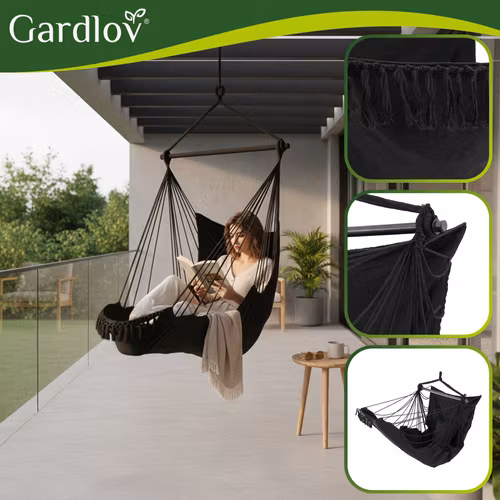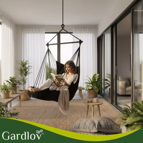 Skapa din egen avkopplingshörna med denna stilrena och bekväma hängstol från GARDLOV. Den brasilianska designen kombinerar funktion och estetik och förvandlar snabbt trädgården, balkongen eller vardagsrummet till en mysig oas.