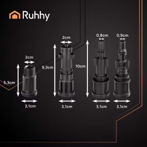 Levereras med 4 adaptrar som passar de flesta högtryckstvättar – enkel att använda direkt.