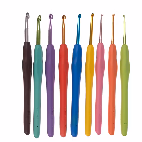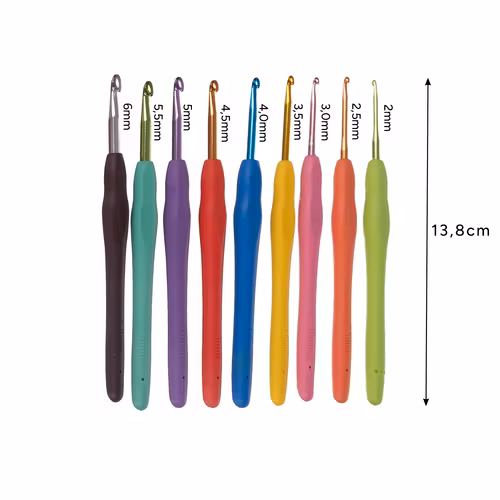 • Alla virknålstorlekar är tydligt markerade - varje virknål har en tydlig storleksmarkering och en ergonomisk utplattad form som förhindrar handtrötthet, så att du enkelt kan nå rätt verktyg, även under intensiv stickning.