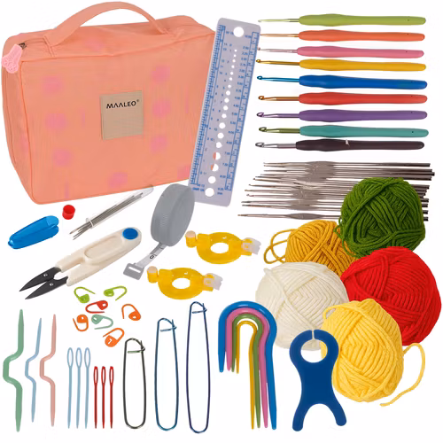 • Även lämplig för nybörjare - detta är ett universellt set för både nybörjare och avancerade användare, där du hittar allt du behöver för att starta eller utveckla din passion. 21 virknålar i storlekar från 0,6 till 6,0 mm, hålmarkörer, stickor, 5 nystan garn, hålhållare, pom-pom-verktyg, måttband, stickbitar och andra tillbehör gör att du fritt kan genomföra olika projekt – från tunna spetsar till tjocka vävar.