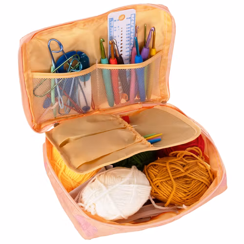 • Du kan enkelt förvara det och ta med dig på din resa - Allt får plats i ett praktiskt fodral som inte bara är elegant utan också extremt kompakt (23 x 19 x 8 cm). Virksetet i fodral får plats i en handväska eller ryggsäck, så att du kan virka hemma, i bilen, på tåget eller på semestern.