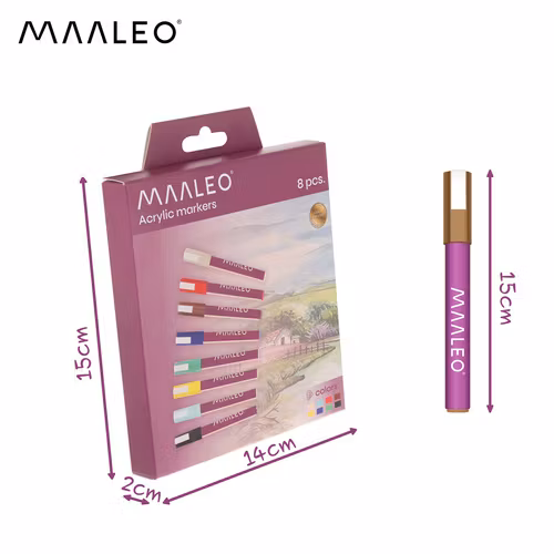 • MAALEO akrylpennor 8 färger 8 ml vattenfasta dekorativa pennor