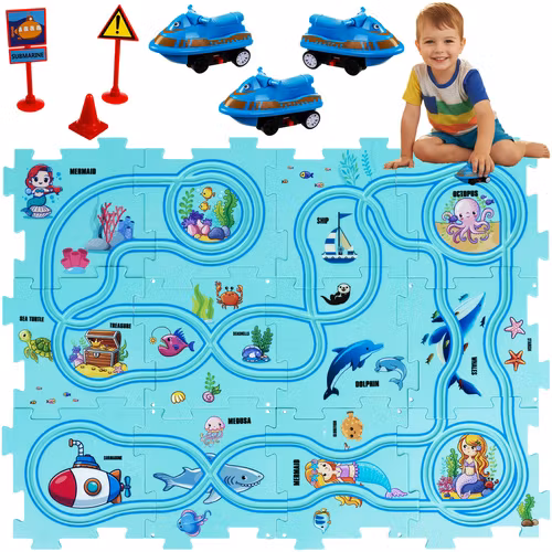 Banpussel för montering, rutt, kreativ och pedagogisk, vägmatta bilar 25 bitar
