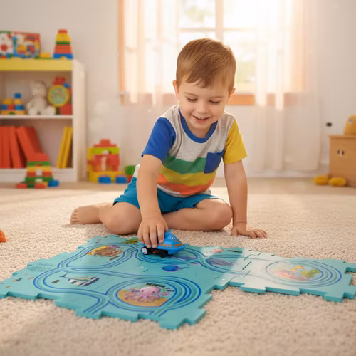 Banpussel för montering, rutt, kreativ och pedagogisk, vägmatta bilar 25 bitar Utveckling genom lek - setet stöder barnets logiska tänkande, kreativitet, koncen