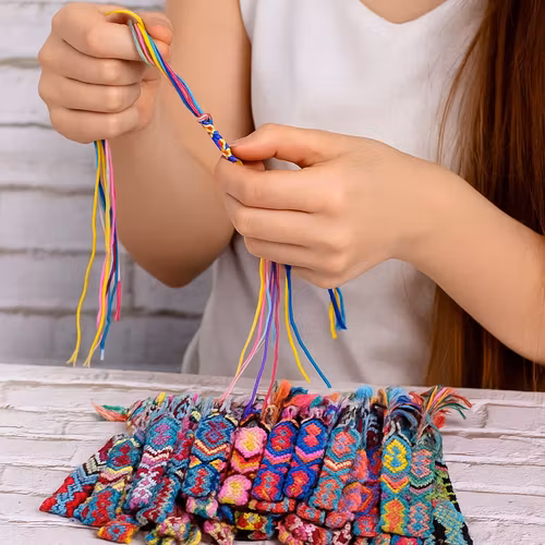 • Färgerna bleknar inte – våra trådar är färgfria och intensivt färgade, därför behåller de sitt djup och sin klarhet även efter tid och tvätt – perfekt för smycken och armband