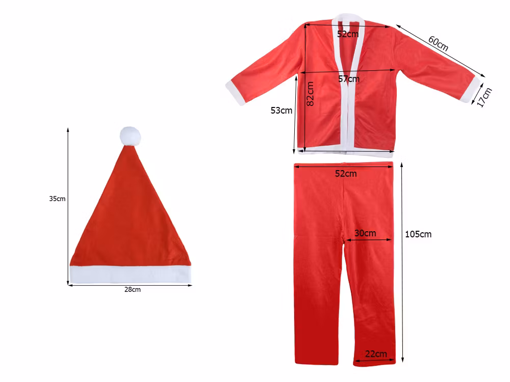 Mått: Jacklängd: 82 cm Jackbredd: 57 cm Ärmlängd: 60 cm Byxlängd: 105 cm Byxbredd: 52 cm Hattmått: 35 cm x 28 cm