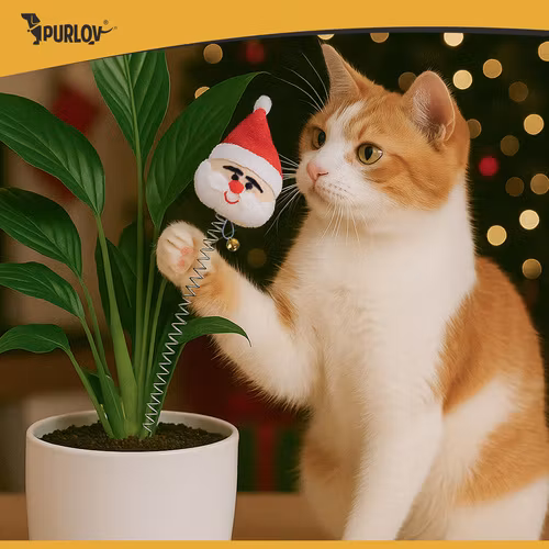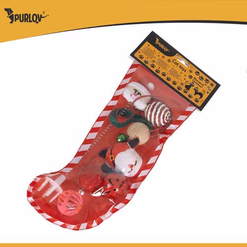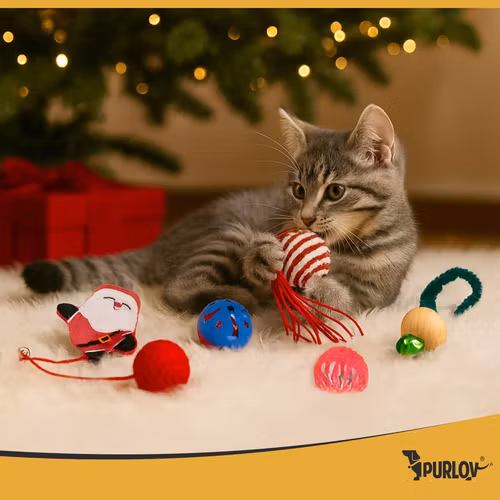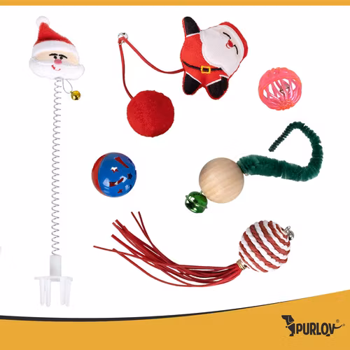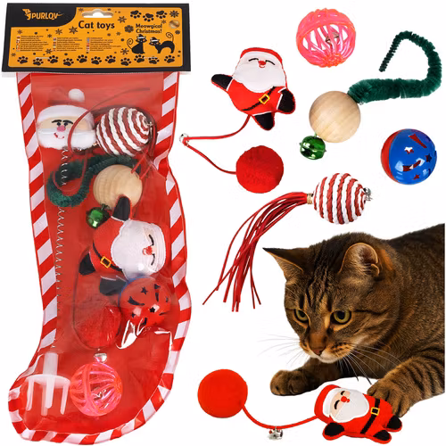 PURLOV kattleksaker, julleksaksset med 6 bollar, fjädrar och pompom!