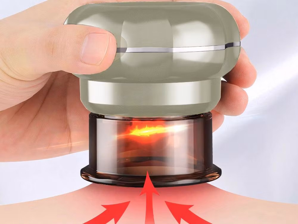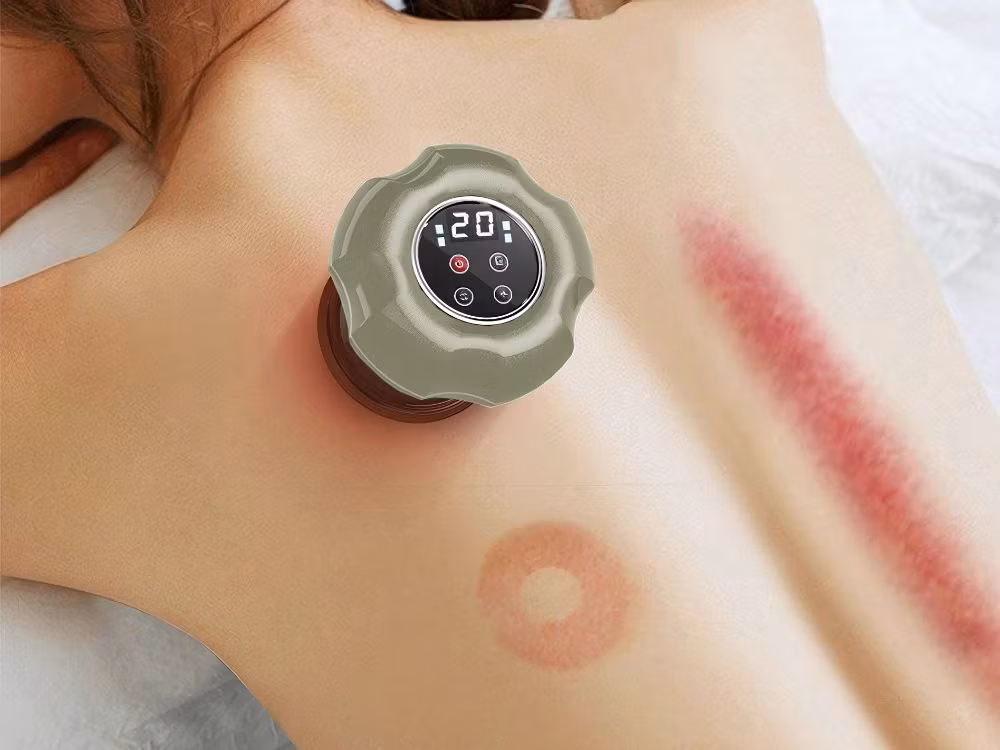 Effektiv kinesisk koppningsvakuummassageapparat med 12 justerbara sugeffektnivåer. Perfekt för att stimulera blodcirkulation, minska muskelspänningar och ge dju