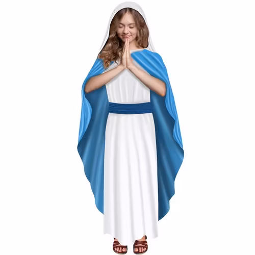 Mari-kostymen är en traditionell och tidlös ensemble som representerar Maria, Jesu moder. Den långa blåvita klänningen är perfekt för krubban i Betlehem. Tack vare det kommer barn att känna julens magi och förkroppsliga denna värdiga och vördnadsvärda figur.