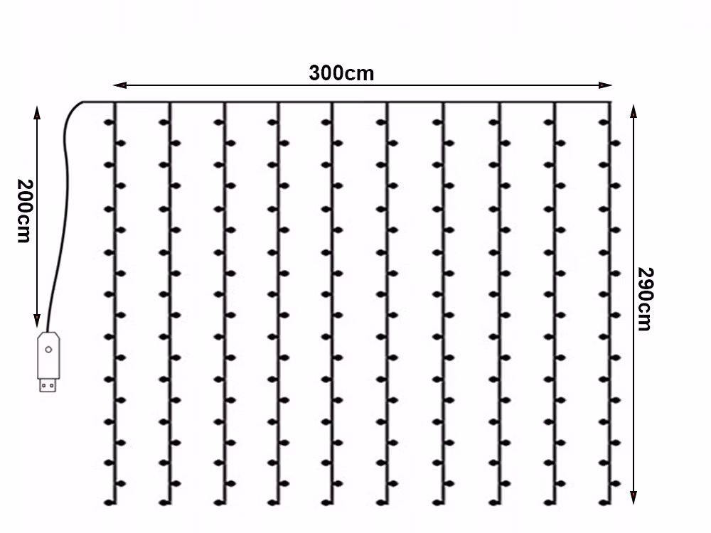 Ljusridå 300 LED för fönstergirlang inomhus kall färg fjärrkontroll 3m