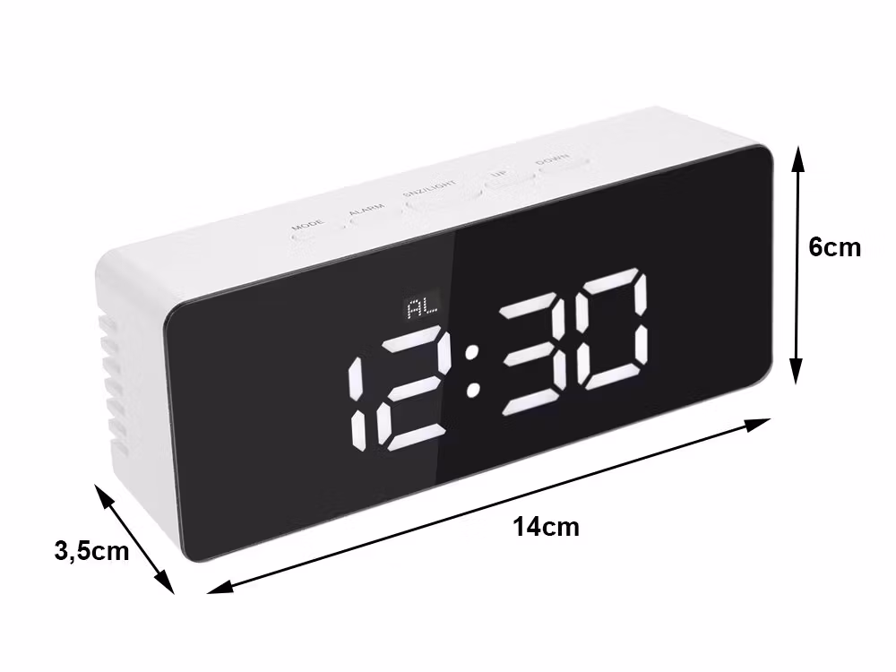 Väckarklocka termometer spegel LED ALARM DATUM 4in1
