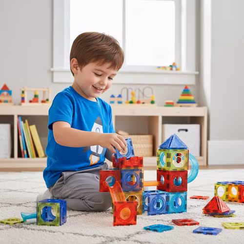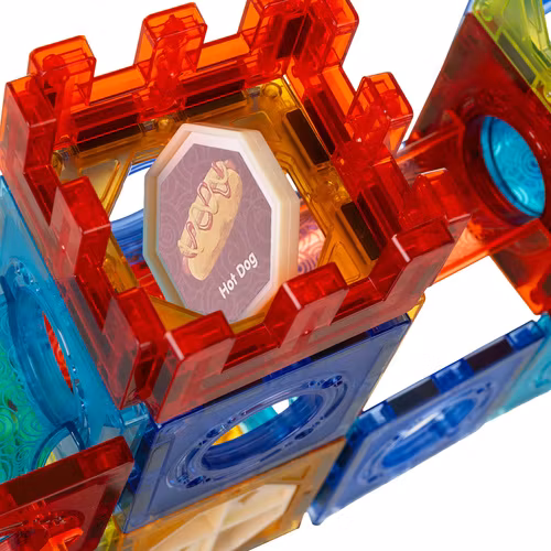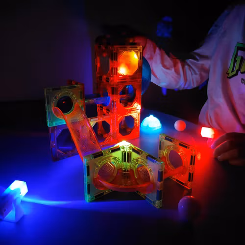 Iso Trade magnetiska byggklossar, 110-delars bollbana för barn, pedagogiska paneler med magneter, ett set för att bygga torn, broar och rutschkanor