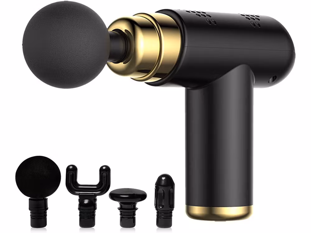 Massagepistolen är utrustad med fyra olika massagespetsar, så att du kan anpassa intensiteten och typen av massage till dina individuella behov. Oavsett om du vill lindra muskelspänningar, förbättra blodcirkulationen eller slappna av efter ett träningspass, kommer vår massagepistol att ge dig fullt stöd från en