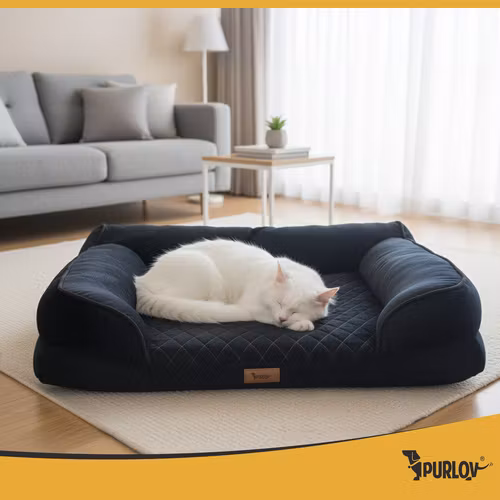 Säkerställ ditt husdjurs hälsosamma och djupa sömn. Purlov ortopediska säng i storlek M formar sig efter kroppen och avlastar leder och ryggrad, medan det mjuka överdraget ger lugnande komfort varje dag. Den stabila, halkfria botten håller sängen på plats – på paneler, kakel och mattor.