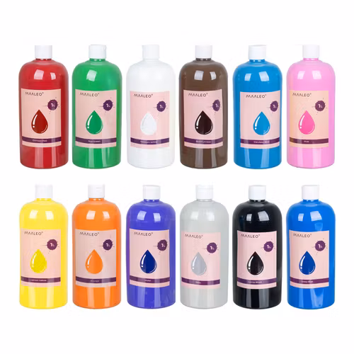 MAALEO posterfärger 12 färger 1000 ml styck - Din färgglada studio i ett paket!