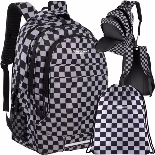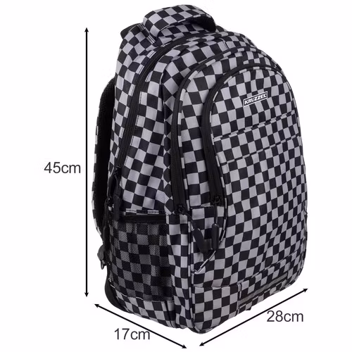 •GENOMTÄNKSAMT INREDNINGSORGANISERING + REFLEKTIVA ELEMENT – ryggsäcken har ett rymligt huvudfack, stängt med en dragkedja med två skjutreglage, vilket möjliggör bekväm öppning och stängning. Inuti finns en stor, förstyvad ficka, perfekt för att bära en bärbar dator, anteckningsbok eller surfplatta, vilket ger tillräckligt skydd mot skador. Förutom den bärbara datorn kan du förvara böcker och anteckningsböcker här. Det andra facket är avsett för platta och stora tillbehör, såsom ett ritblock eller konstverk. Det finns också en ficka på framsidan av ryggsäcken, perfekt för att packa frukost eller förvara småsaker som nycklar, telefon eller plånbok. Under fickan finns en reflexremsa som ger användaren synlighet och säkerhet efter mörkrets inbrott. Det rutiga designmönstret ger ryggsäcken en unik karaktär. Den är både funktionell och snygg, den återspeglar användarens personlighet och stil perfekt.