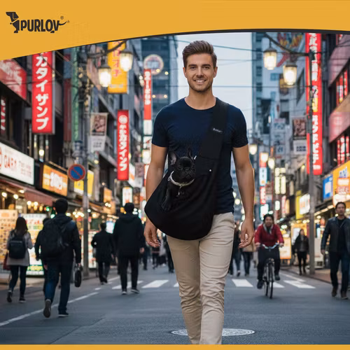 Bekväm kängurubärsele med brett bälte och mjukt foder - husdjursbärsele med selekoppel - säker transport för promenader, shopping och till veterinärenPurlov-bär