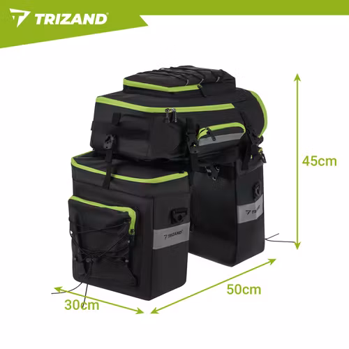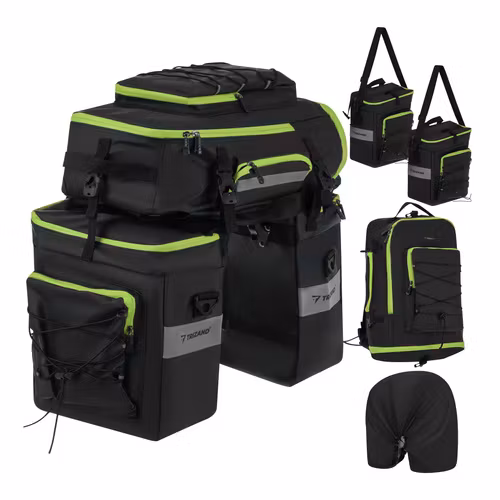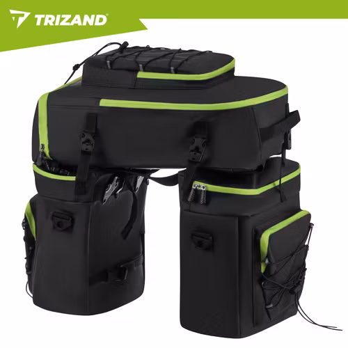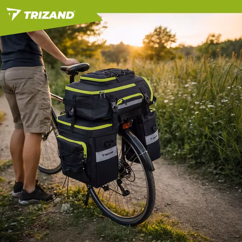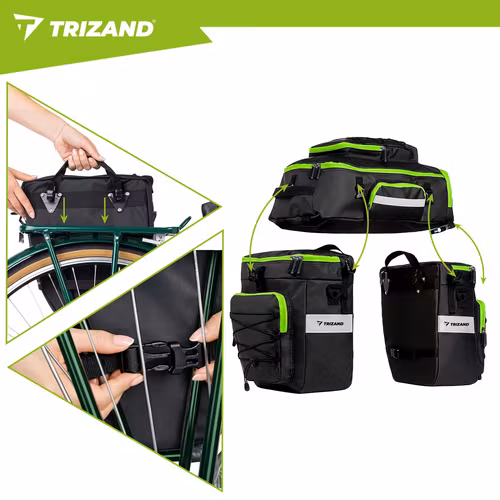Maximera din packning och komfort med denna rymliga och smarta 3-i-1 cykelväska från TRIZAND. Perfekt för pendling, cykelsemester eller bikepacking – använd den som pakethållarväska, sidoväskor eller ryggsäck.