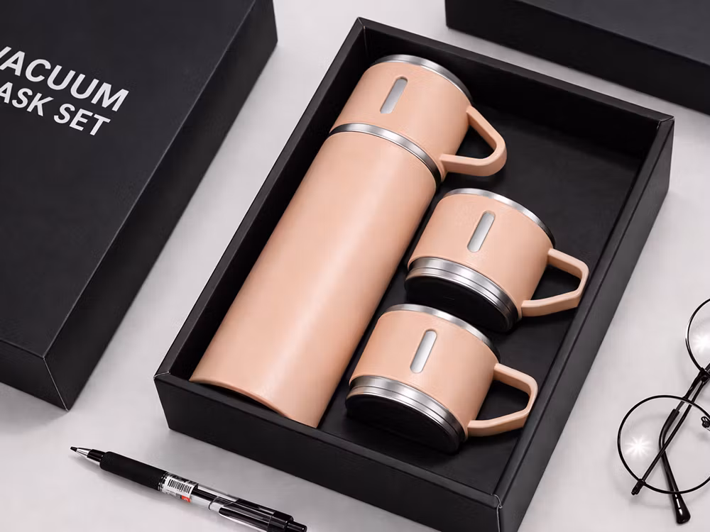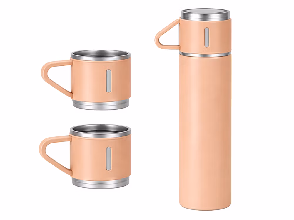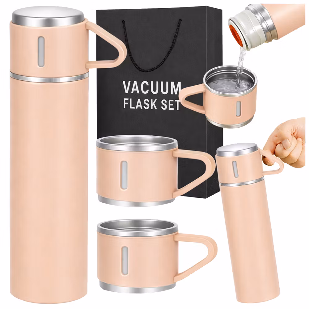 ☕ Termos 400 ml med 3 muggar – rostfritt stål för resa & vardag