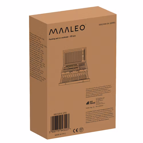 Ett komplett och inspirerande konst- och målarset med 130 delar i praktisk träväska – perfekt för kreativt skapande hemma eller i skolan!