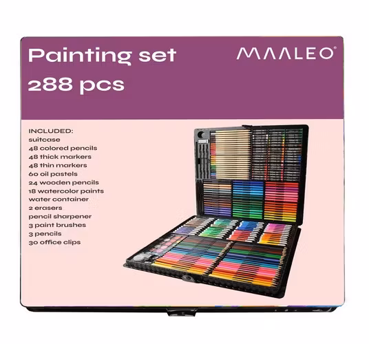 Ett stort och mångsidigt målarset med 288 delar som ger oändliga möjligheter till kreativt skapande. Perfekt som present eller för att utveckla konstnärliga färdigheter hemma eller i skolan