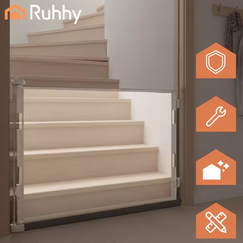 Skydda ditt hem med en smart och diskret säkerhetsgrind från RUHHY. Den utdragbara rullgrinden är perfekt för trappor, dörröppningar och passager – utan tröskel som kan orsaka snubbelrisk.